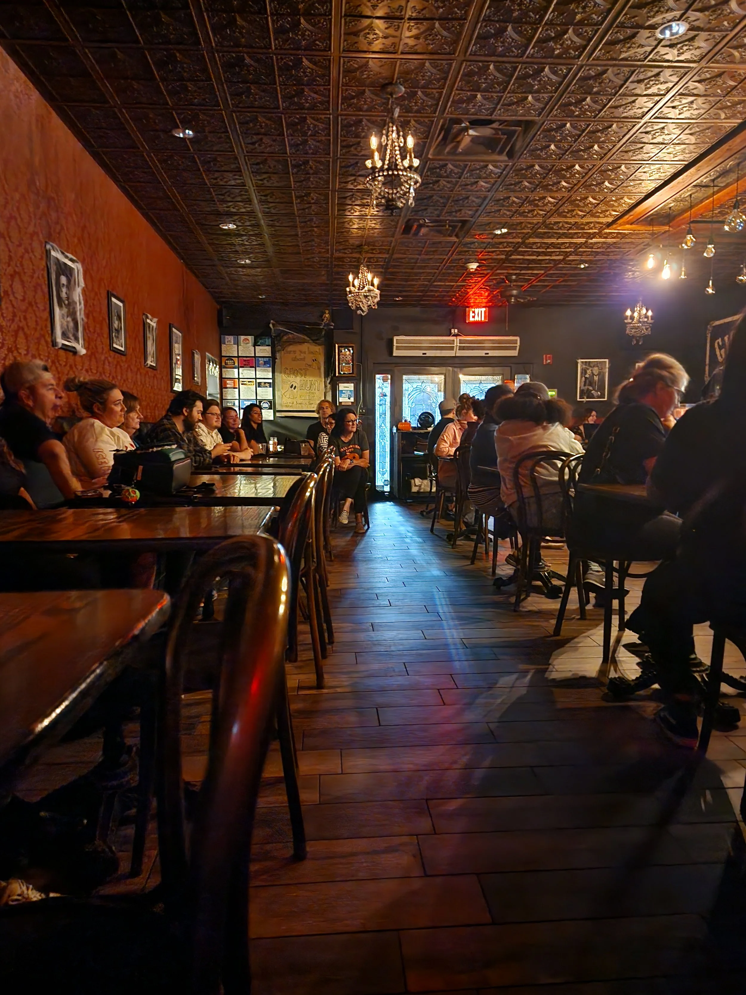 We were ushered into the viewing room, which if you haven't been to giglewaters in safety harbor, first off, go. The food is fantastic, drinks are really good, and they have to be to get me to drink, and they have a great little theater in the back that shows classic movies. Thats were the next part of our tour took place. We heard stories of paranormal experiences, listened to past emf sessions and watched footage from their security camaras, in case you weren't already convinced the place has legit spirits.